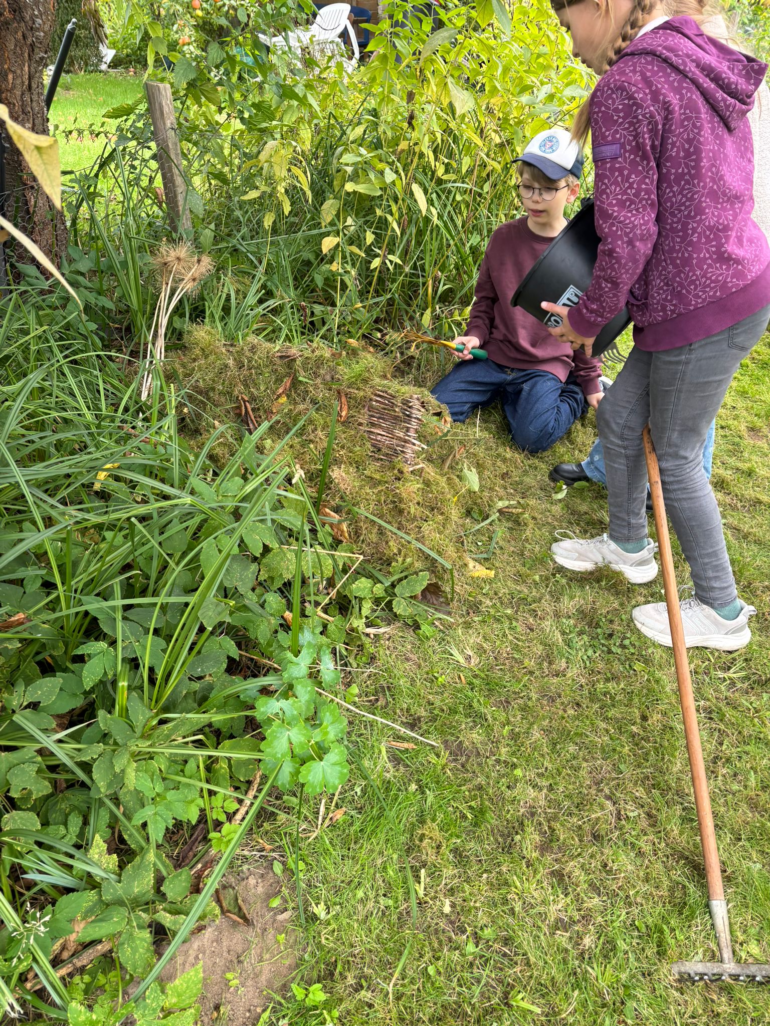 Mal sehen, wer dort einzieht. In unserem Schulgarten haben die Kinder ein paar Unterschlüpfe für Igel oder andere Tiere gebaut.